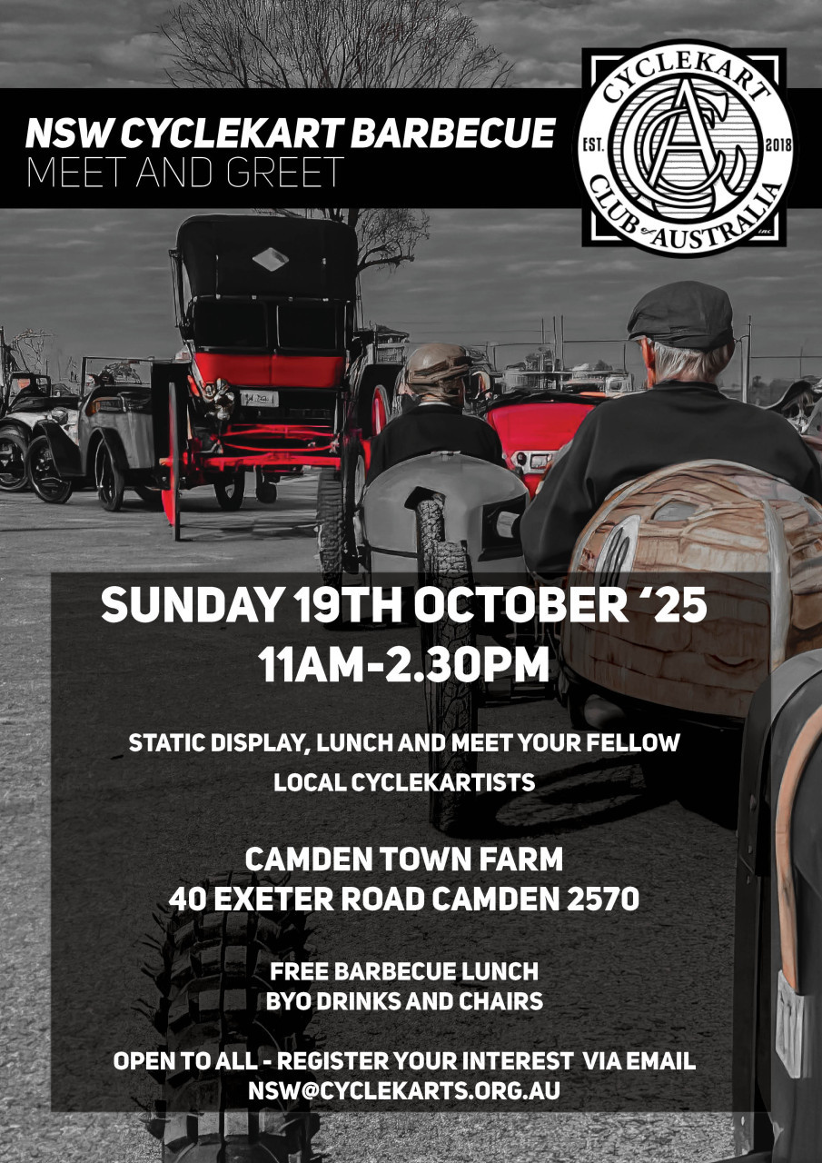 The Cyclekart Club of Australia invites you to join us for a day of driving, displays and good company at our BBQ & Test & Tune Day!
