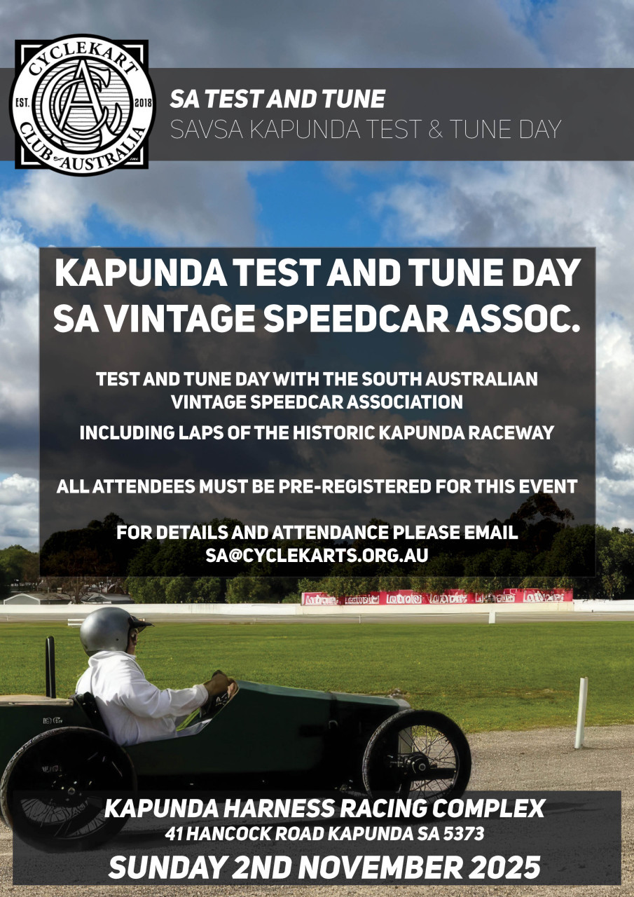 SAVSA have invited the CCA to attend it's test and tune day at Kapunda track on the 2nd of November.