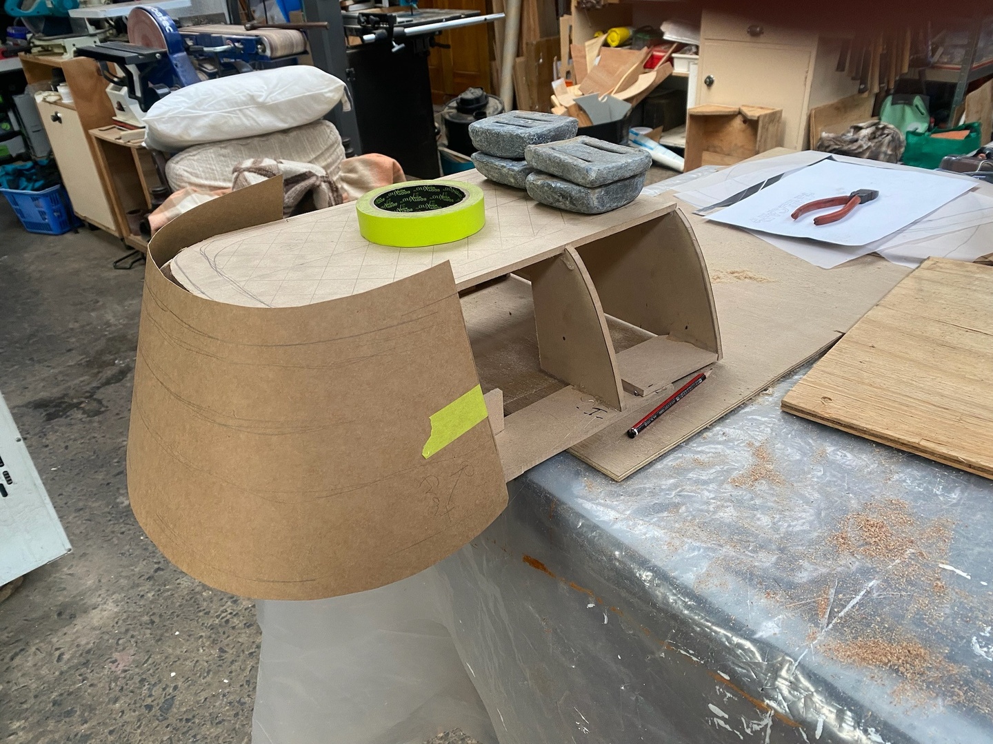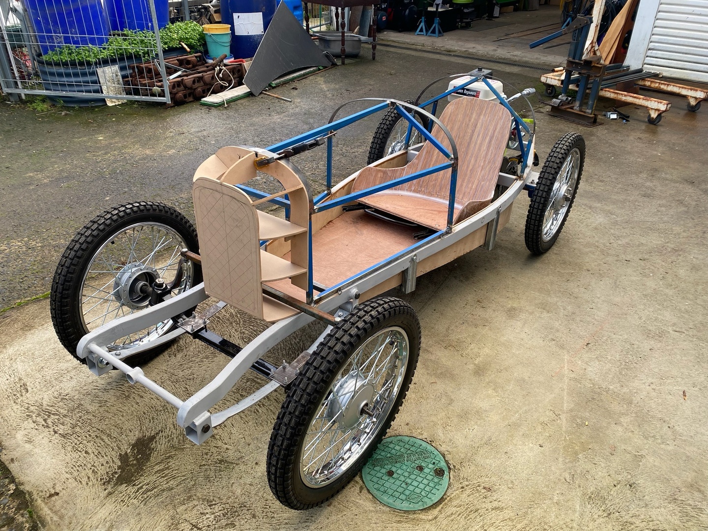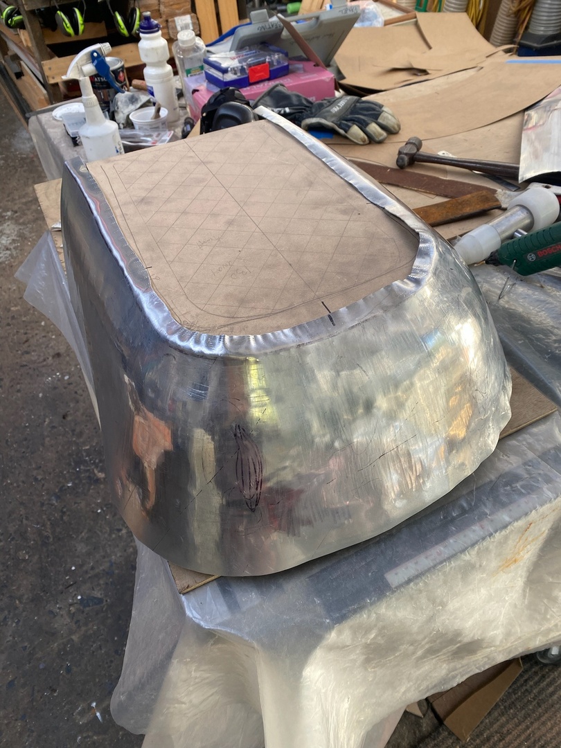 The bodywork around the 'radiator' is probably the most complex panel on the kart. A mock up of the surround was made from MDF so the shape can be tested on the kart. From that a paper template for the alloy sheet was made. This involved a lot of guess work as we don't have a lot of experience with forming aluminium sheet. Nik worked the sheet on the english wheel while comparing the sheet to the shape of the mock up. There is still some fine tuning of the shape to be done but it's really coming along. We found it is useful to anneal the alloy as it work hardens whilst shaping. It's a tricky business as it's very easy to overheat the aluminium.