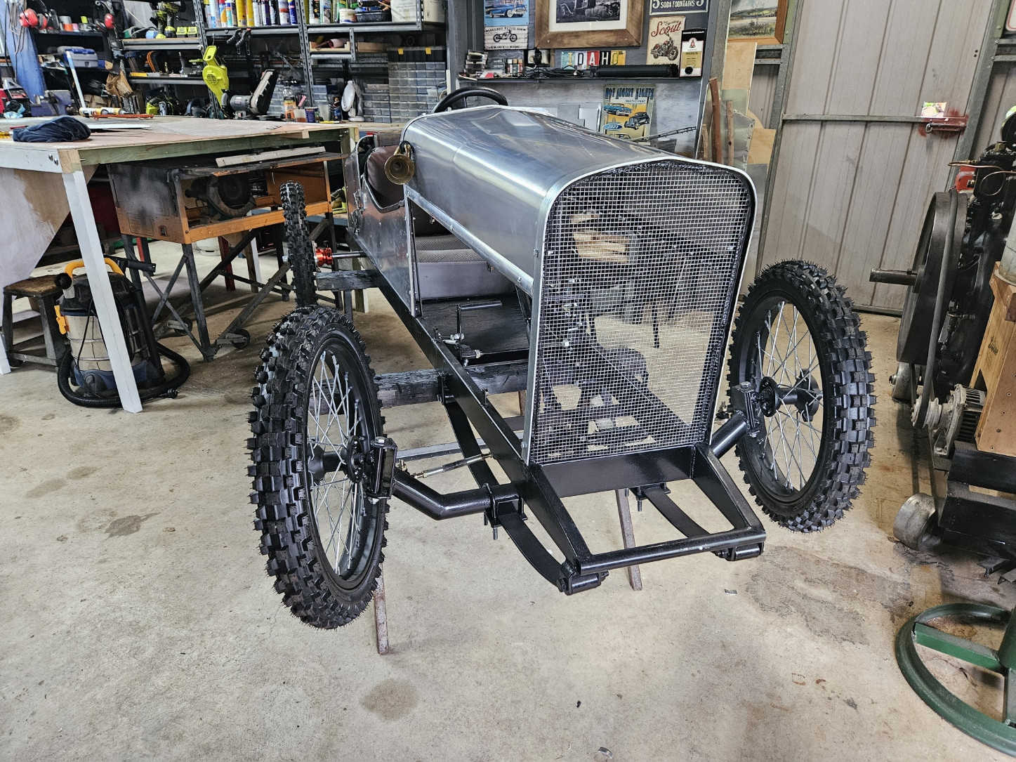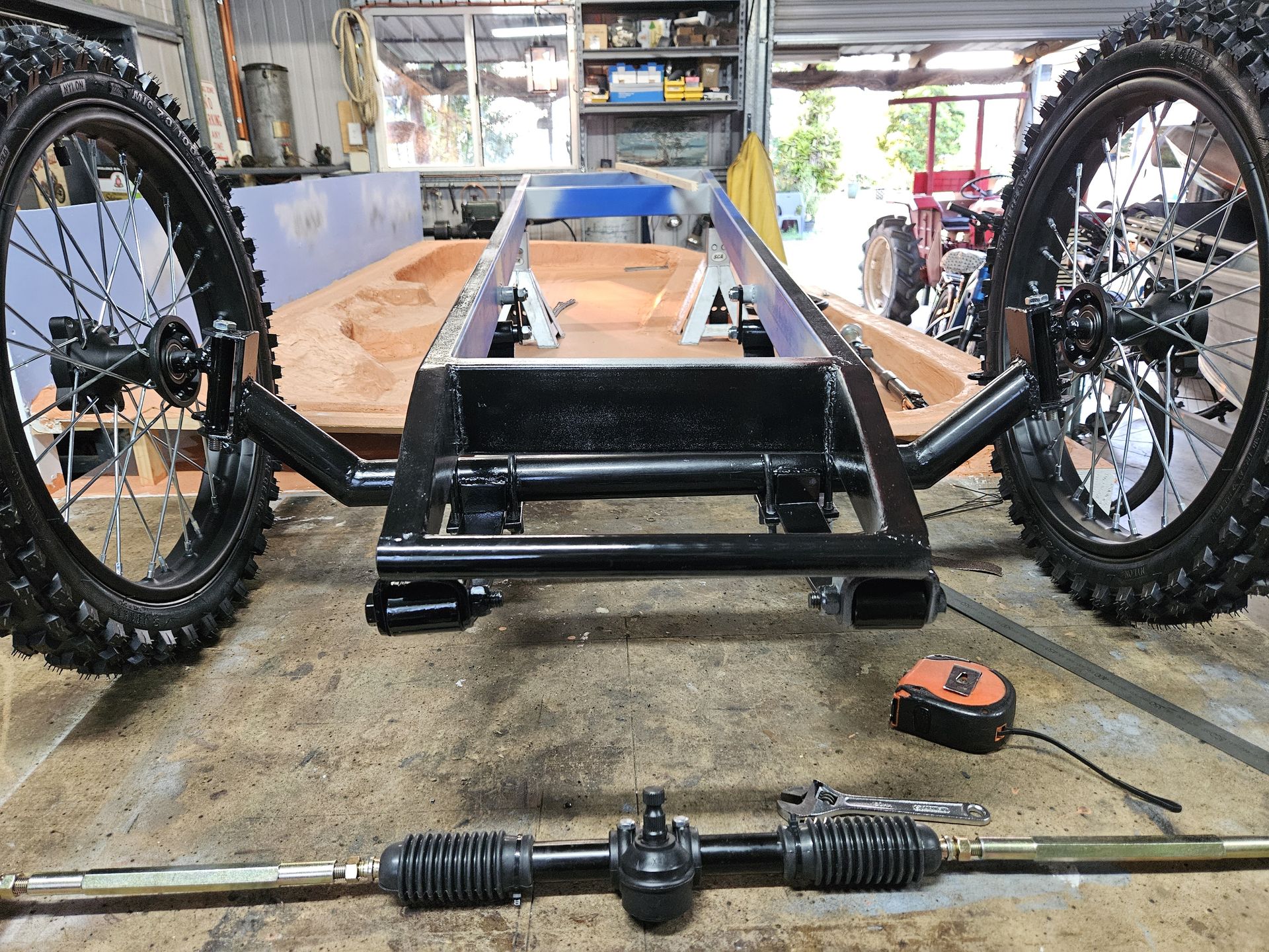 Some updates over the last few days. Removed the lugs from the inside of the front wheels so that the wheel fits with the lugs ion the inside and the lugs don't interfere with the steering arm. Fitted grease nipples to the steering king pins and removed some of the vertical play with shims. Removed the rack & pinion to replace it with a new better quality rack (on order). Made a new seat bucket.