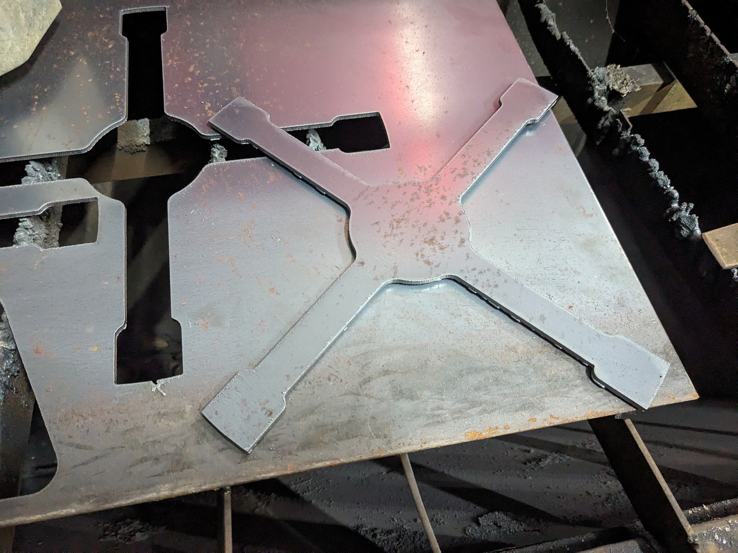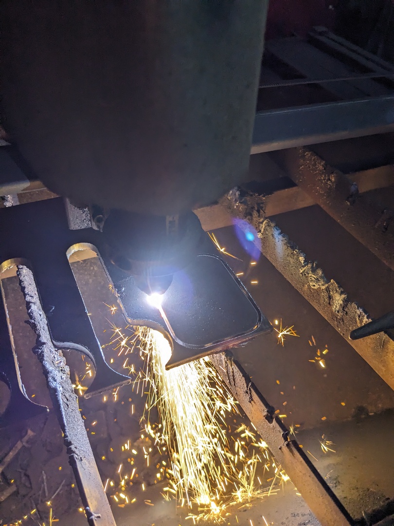 Unfortunately yesterday was raining pretty hard so we spent some time drafting up the adaptors for the wheel hubs and cutting out some parts on the CNC plasma cutter, which kept us in the workshop. Two new skills unlocked lol. Unfortunately there just wasn't enough room to lay the chassis out inside so we decided to put that off until today.