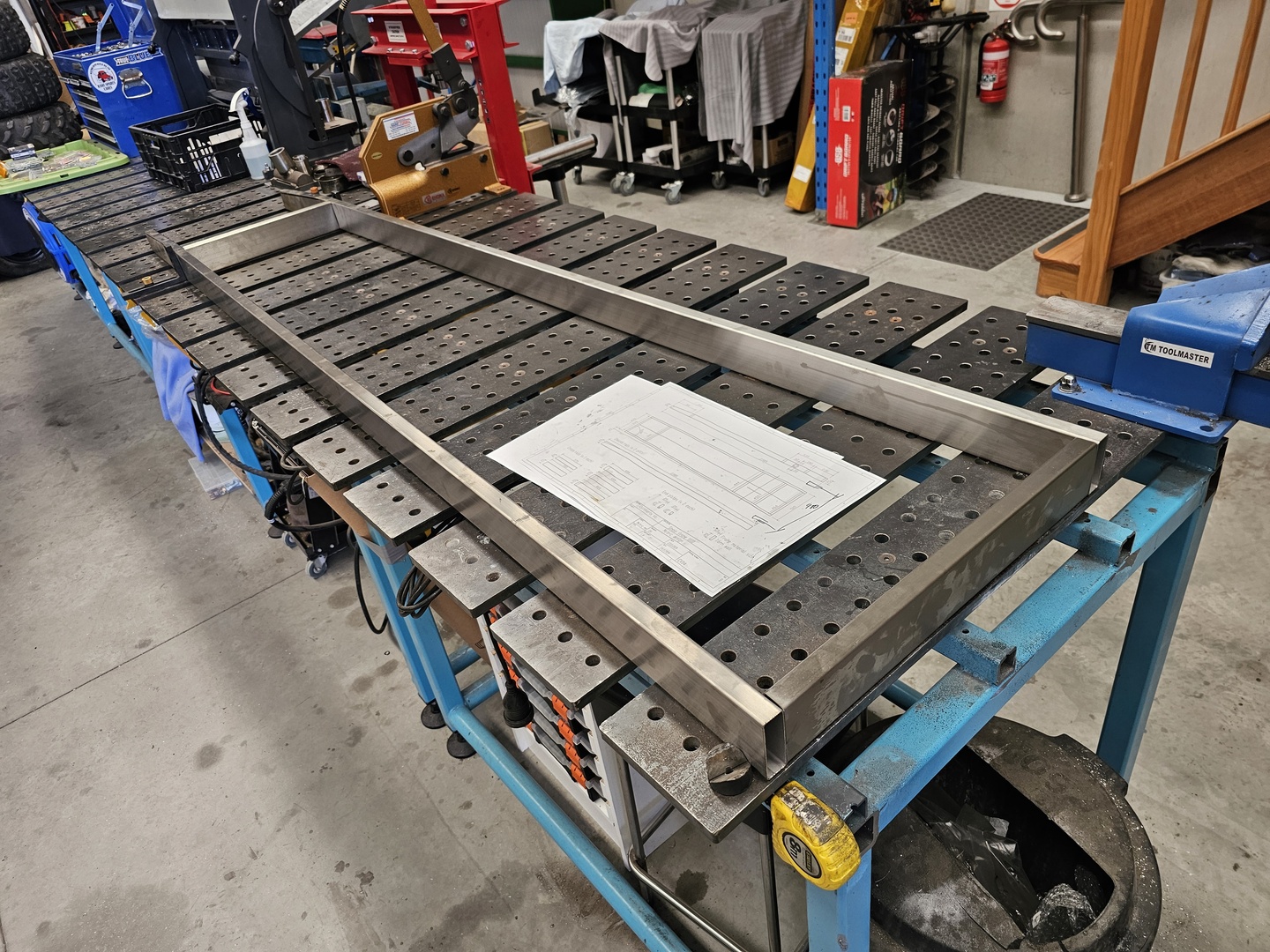 Cut up the frame and laid it out on the fabrication table. I'm happy with the dimensions.