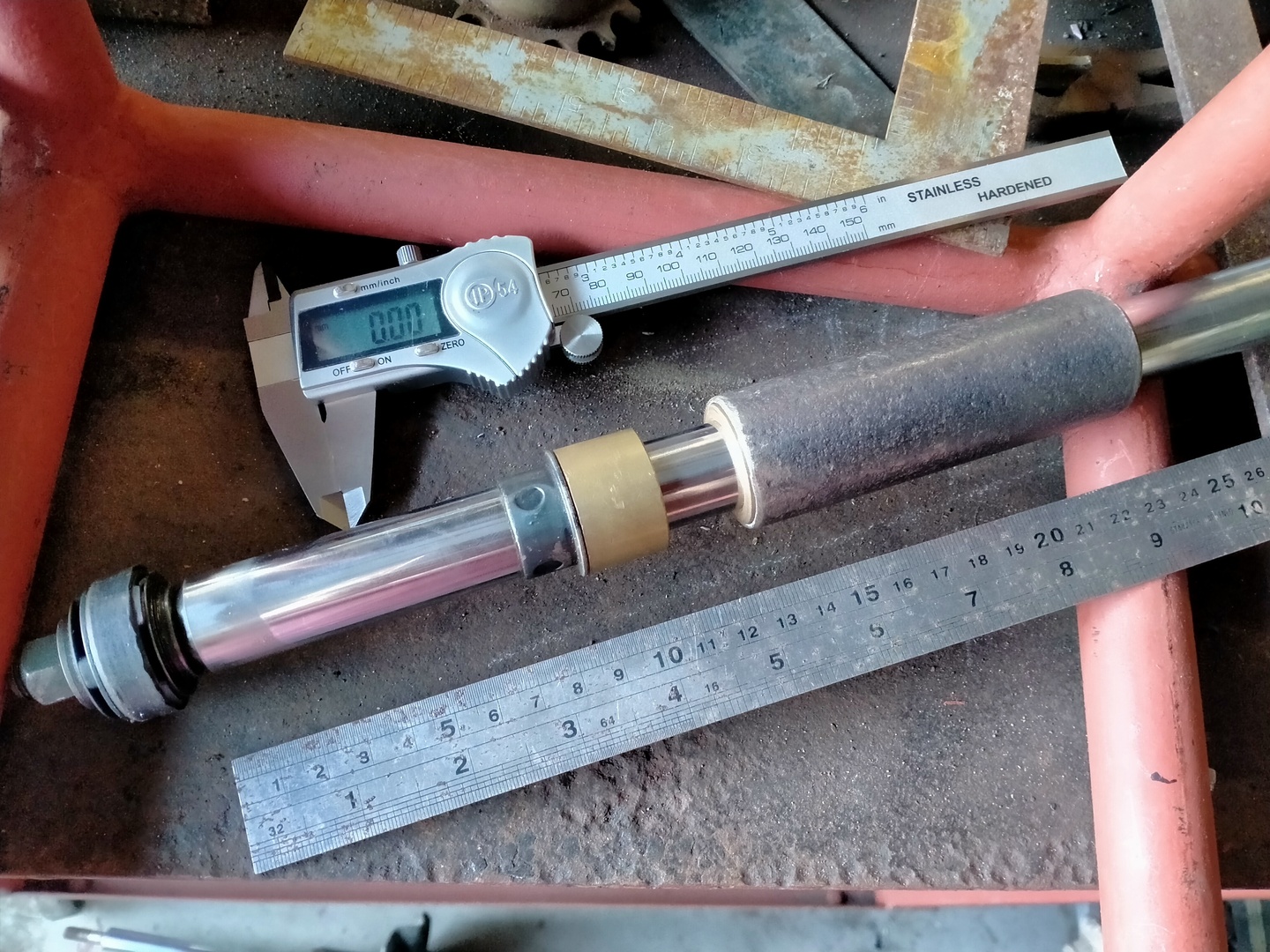 Although both struts were removed from the same car!?!?, the second one had its rebound stopper welded 30mm further up the shaft.