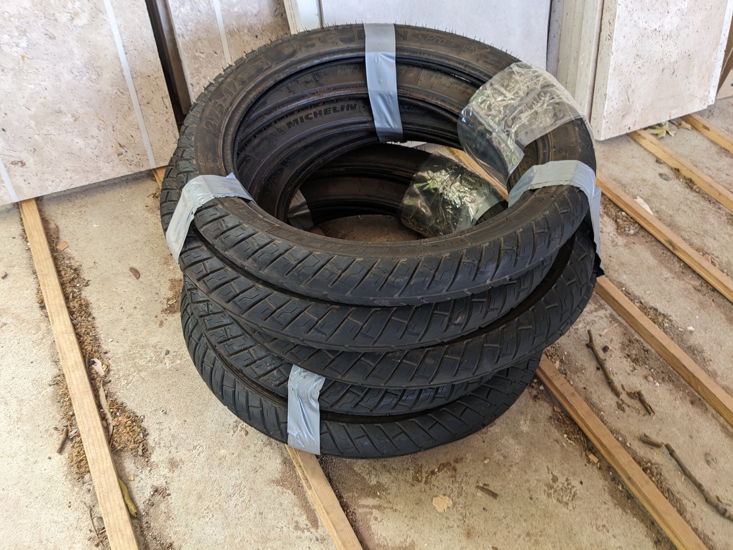 Managed to find a bunch of really cheap tyres, Just $5 each. Michelins too. That should see me good for tyres for a while now. There's enough to complete the Riley and an additional build.