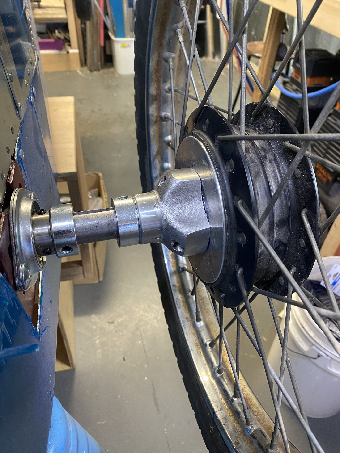 Disc brake and sprocket mounting-hubs hubs are readily available to suit all axle styles, so procurement of those items is usually just a case of ensuring that they match the chosen axle, but wheel hubs are a different matter. Regardless of what axle type you decide to use, the key point in both cases is working out how mount the wheels to the axle. Generally off-the-shelf GoKart hubs can be adapted to work with both Postie Bike wheels and Pit Bike wheels but there is nothing that works out of the box available in Australia. If you don't have the skills or resources to be able to make some kind of hub adaptor, you can buy custom hubs or even full axle kits from Renegade CycleKarts in the US, but you will need to factor in shipping, import duty and GST.