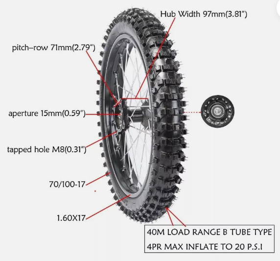![]() | 17in Front Wheel 70/100-17 Tyre Tube Rim for DIY Atomik Pit Dirt Bike Apollo SSR | $115.99each. Australian Seller |