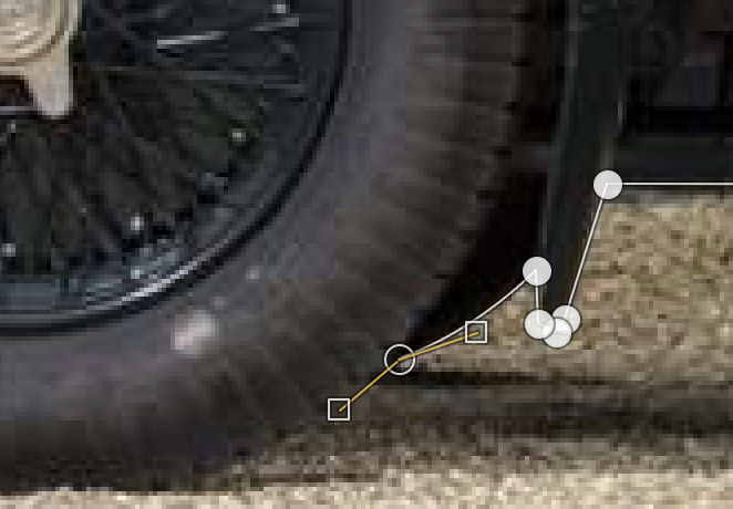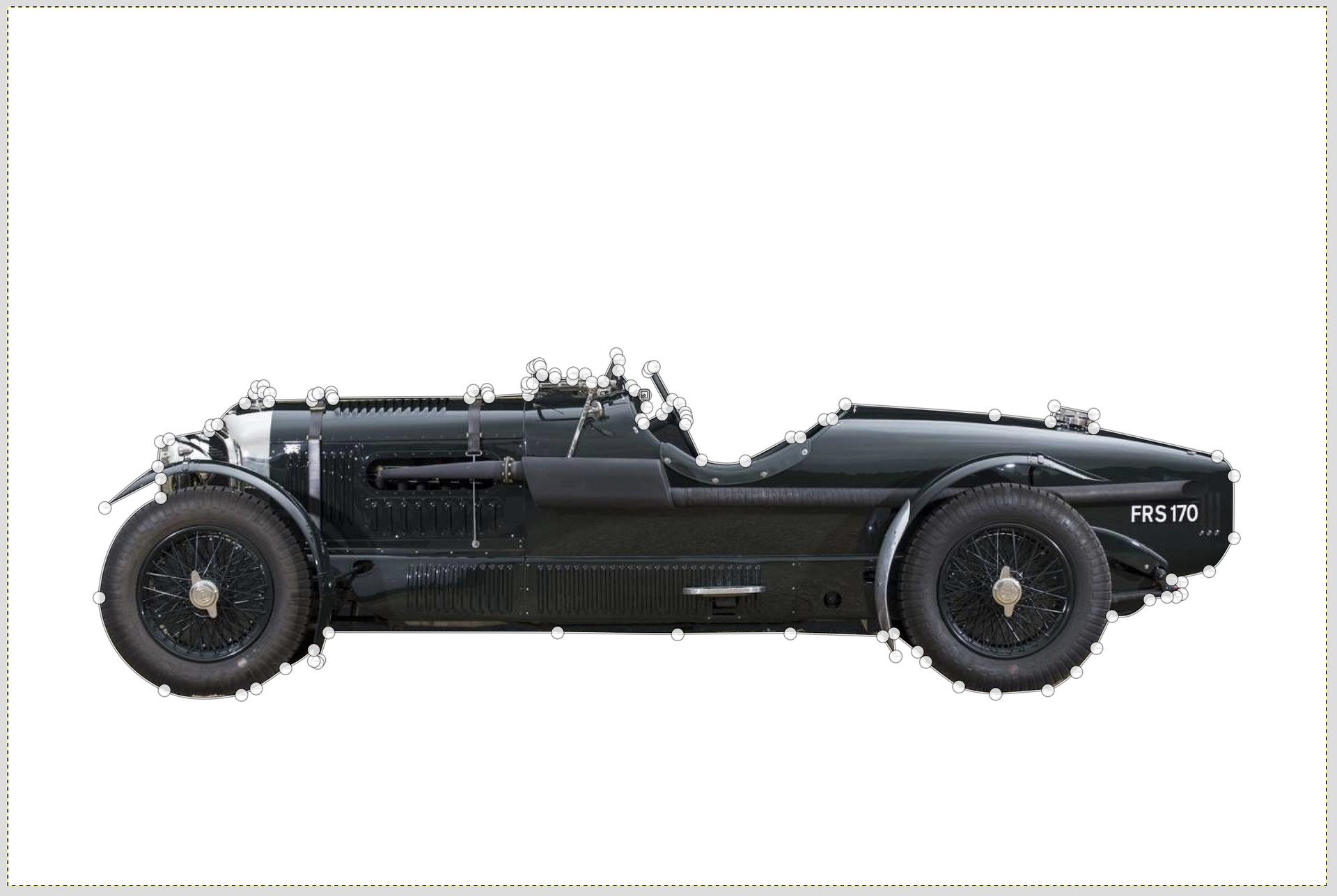 Then you can create a path around your image by clicking along the outside of the car. If you need to trace a curve you can click-hold-drag. To do this, when you initially click make sure that you are on the outline, then click and hold the button and then move further along the curve before releasing. You will notice that the path then follows the curve. It will also display 'drag handles'. These are two lines with square boxes that allow you to adjust the curve. It takes a little practice to get perfect results with curves, but you can easily just use lots of shorter straight lines if you are finding curves a little tricky.