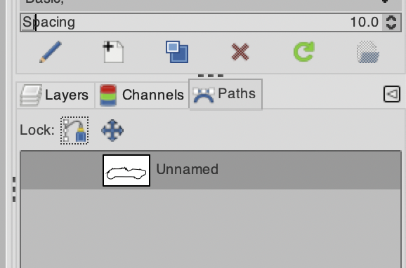 OK. Now you have the path drawn we can use the path to select the parts of the image we want to delete. To do this you need to view the paths pallet. You will find this underneath the layer pallet. You can access it by clicking the 'Paths' tab just above the layer pallet. It should look something like this...