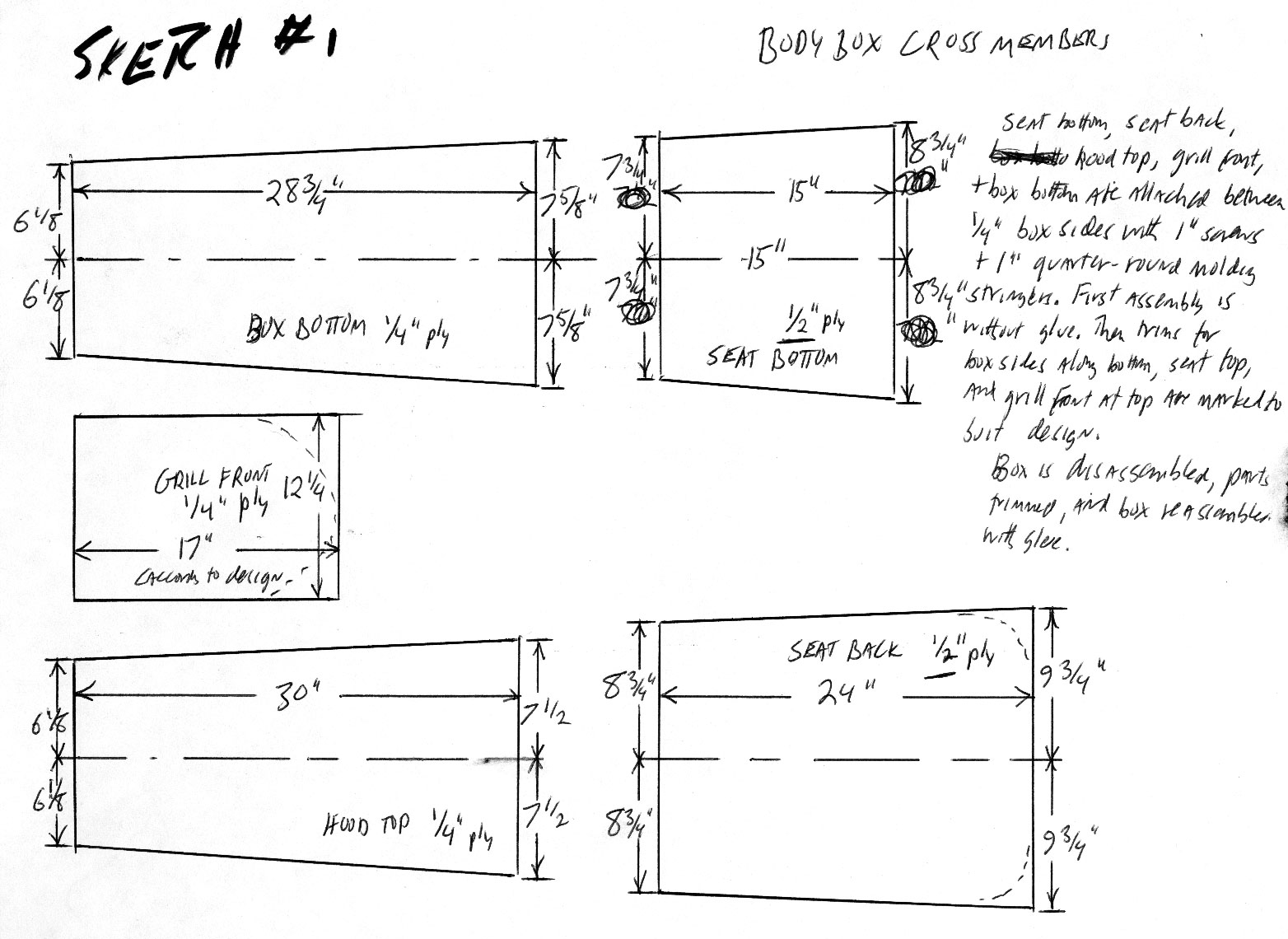 Even if you are not building to the classic Stevenson design, the dimensions are still the same for all Cyclekarts, and so the plan shown above provide the perfect starting point from which to scale your build. By superimposing an image of your inspiration car over the top of it you will be able to take measurements and scale your chassis and frame layout from it.